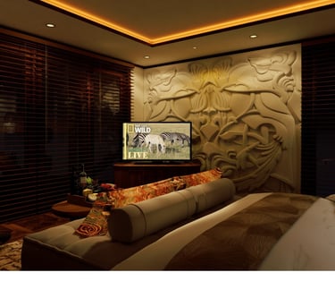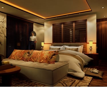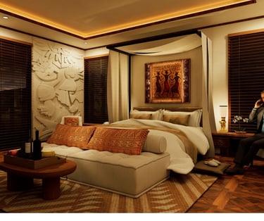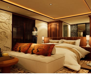 Discover one of our 40 bespoke Junior Villas, where 47.5 m² of contemporary elegance meets the serene spirit of Adzopé. Each villa is a masterclass in spatial harmony, offering a seamless flow between refined interiors and the lush surroundings of L'oasis. Whether you’re seeking a romantic getaway or a quiet solo retreat, our Junior Villas provide the perfect proportions for ultimate relaxation.